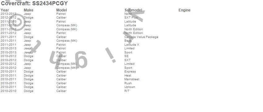 Below is an abbreviated list of applications for the SeatSaver Custom Seat Cover.Caliber, Compass, Patriot, Dodge, Jeep, 2013, 2012, 2011, 2010