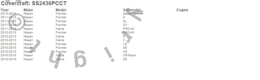 Below is an abbreviated list of applications for the SeatSaver Custom Seat Cover.Frontier, Xterra, Nissan, 2013, 2012, 2011, 2010