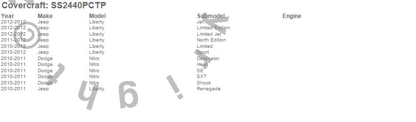 Below is an abbreviated list of applications for the SeatSaver Custom Seat Cover.Liberty, Nitro, Dodge, Jeep, 2012, 2011, 2010