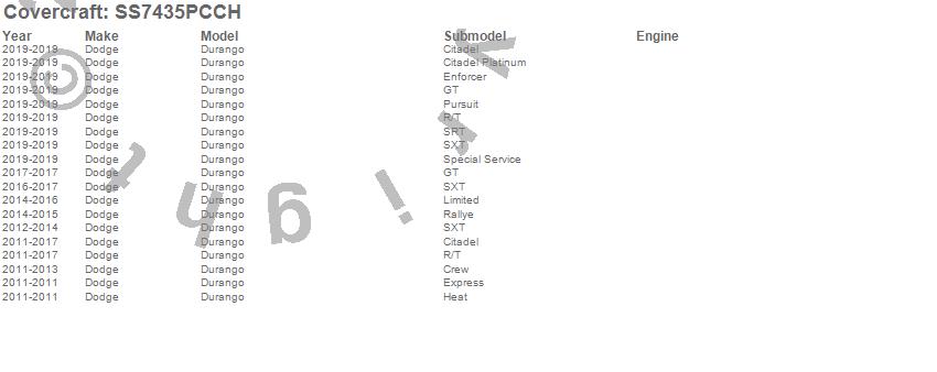 Below is an abbreviated list of applications for the SeatSaver Custom Seat Cover.Durango, Dodge, 2019, 2017, 2016, 2015, 2014, 2013, 2012, 2011