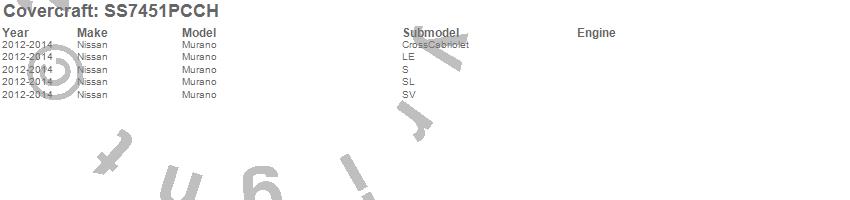 Below is an abbreviated list of applications for the SeatSaver Custom Seat Cover.Murano, Nissan, 2014, 2013, 2012