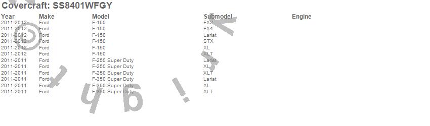 Below is an abbreviated list of applications for the SeatSaver Custom Seat Cover.F-150, F-250 Super Duty, F-350 Super Duty, Ford, 2012, 2011