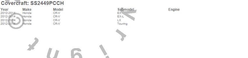 Below is an abbreviated list of applications for the SeatSaver Custom Seat Cover.CR-V, Honda, 2014, 2013, 2012