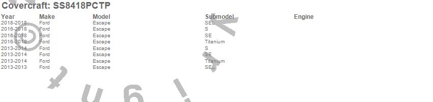 Below is an abbreviated list of applications for the SeatSaver Custom Seat Cover.Escape, Ford, 2018, 2017, 2016, 2014, 2013