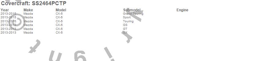 Below is an abbreviated list of applications for the SeatSaver Custom Seat Cover.CX-5, Mazda, 2015, 2014, 2013