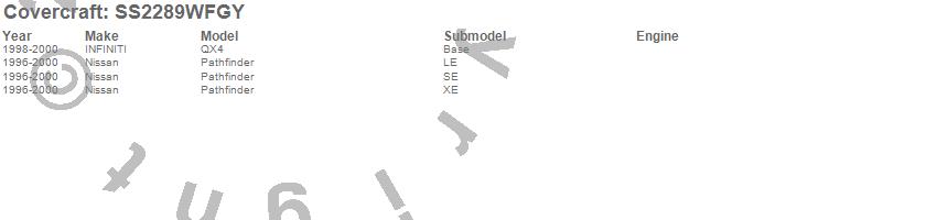 Below is an abbreviated list of applications for the SeatSaver Custom Seat Cover.Pathfinder, QX4, INFINITI, Nissan, 2000, 1999, 1998, 1997, 1996