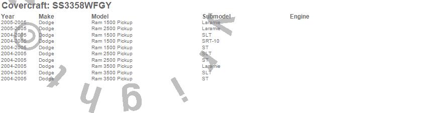 Below is an abbreviated list of applications for the SeatSaver Custom Seat Cover.Ram 1500, Ram 2500, Ram 3500, Dodge, 2005, 2004
