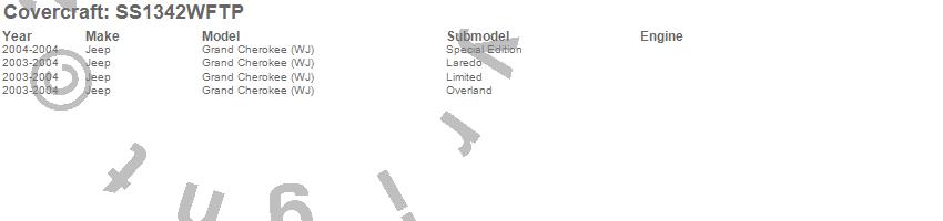Below is an abbreviated list of applications for the SeatSaver Custom Seat Cover.Grand Cherokee (WJ), Jeep, 2004, 2003