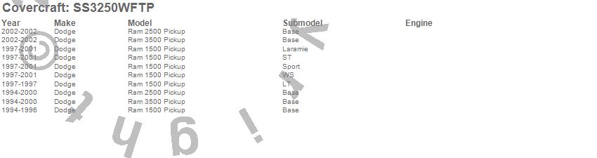 Below is an abbreviated list of applications for the SeatSaver Custom Seat Cover.Ram 1500, Ram 2500, Ram 3500, Dodge, 2002, 2001, 2000, 1999, 1998, 1997, 1996, 1995, 1994