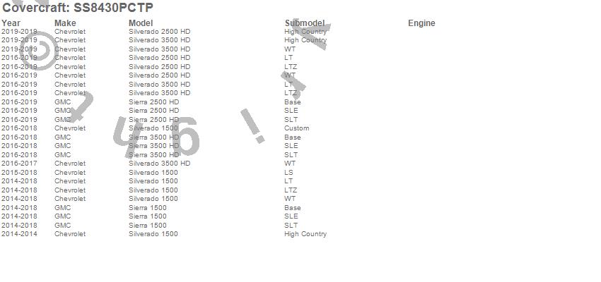 Below is an abbreviated list of applications for the SeatSaver Custom Seat Cover.Sierra 1500, Sierra 2500 HD, Sierra 3500 HD, Silverado 1500, Silverado 2500 HD, Silverado 3500 HD, Chevrolet, GMC, 2019, 2018, 2017, 2016, 2015, 2014