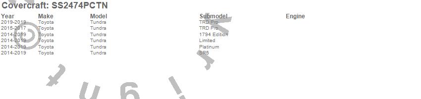 Below is an abbreviated list of applications for the SeatSaver Custom Seat Cover.Tundra, Toyota, 2019, 2018, 2017, 2016, 2015, 2014