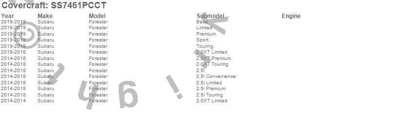 Below is an abbreviated list of applications for the SeatSaver Custom Seat Cover.Forester, Subaru, 2019, 2018, 2017, 2016, 2015, 2014