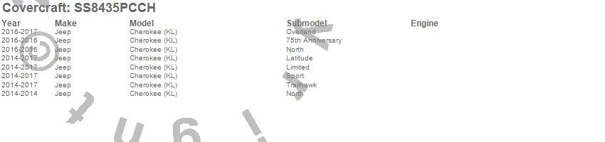 Below is an abbreviated list of applications for the SeatSaver Custom Seat Cover.Cherokee (KL), Jeep, 2017, 2016, 2015, 2014