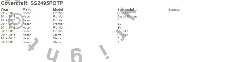 Below is an abbreviated list of applications for the SeatSaver Custom Seat Cover.Frontier, Xterra, Nissan, 2019, 2018, 2017, 2016, 2015, 2014