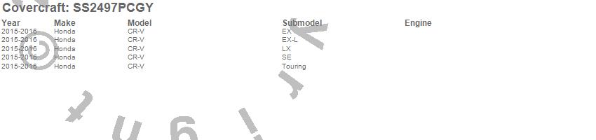 Below is an abbreviated list of applications for the SeatSaver Custom Seat Cover.CR-V, Honda, 2016, 2015