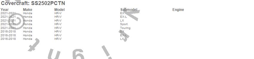 Below is an abbreviated list of applications for the SeatSaver Custom Seat Cover.HR-V, Honda, 2021, 2018, 2017, 2016