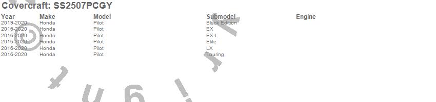 Below is an abbreviated list of applications for the SeatSaver Custom Seat Cover.Pilot, Honda, 2020, 2019, 2018, 2017, 2016