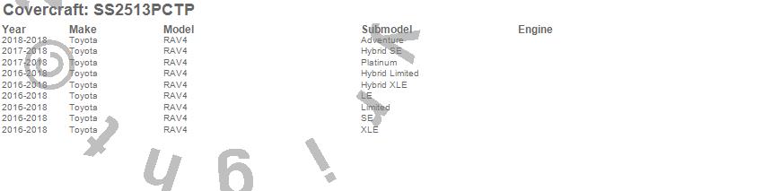 Below is an abbreviated list of applications for the SeatSaver Custom Seat Cover.RAV4, Toyota, 2018, 2017, 2016