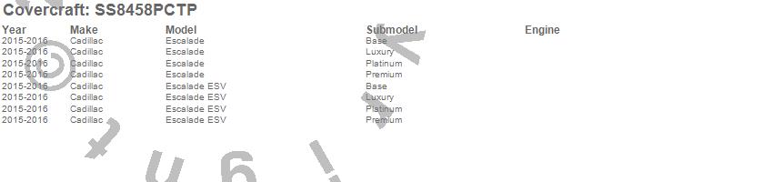 Below is an abbreviated list of applications for the SeatSaver Custom Seat Cover.Escalade, Escalade ESV, Cadillac, 2016, 2015