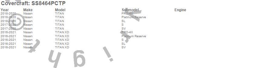 Below is an abbreviated list of applications for the SeatSaver Custom Seat Cover.TITAN, TITAN XD, Nissan, 2024, 2021, 2020, 2019, 2018, 2017, 2016