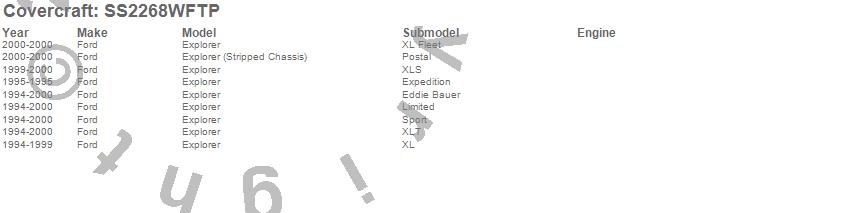 Below is an abbreviated list of applications for the SeatSaver Custom Seat Cover.Explorer, Explorer (Stripped Chassis), Ford, 2000, 1999, 1998, 1997, 1996, 1995, 1994