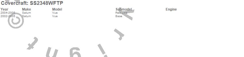 Below is an abbreviated list of applications for the SeatSaver Custom Seat Cover.Vue, Saturn, 2005, 2004, 2003, 2002