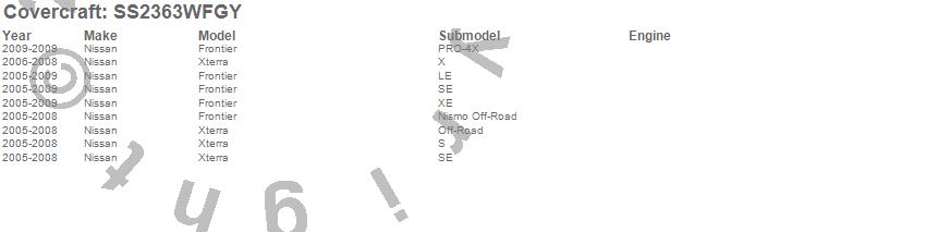 Below is an abbreviated list of applications for the SeatSaver Custom Seat Cover.Frontier, Xterra, Nissan, 2009, 2008, 2007, 2006, 2005