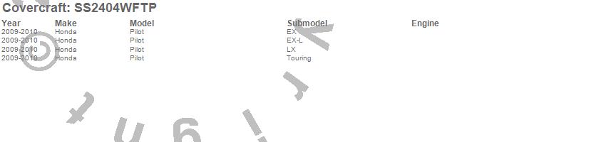 Below is an abbreviated list of applications for the SeatSaver Custom Seat Cover.Pilot, Honda, 2010, 2009
