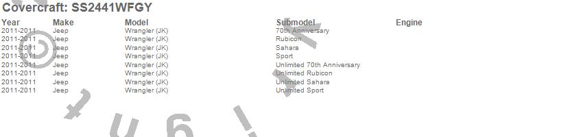 Below is an abbreviated list of applications for the SeatSaver Custom Seat Cover.Wrangler (JK), Jeep, 2011