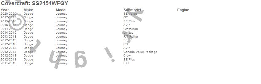 Below is an abbreviated list of applications for the SeatSaver Custom Seat Cover.Journey, Dodge, 2020, 2019, 2018, 2017, 2016, 2015, 2014, 2013, 2012, 2011