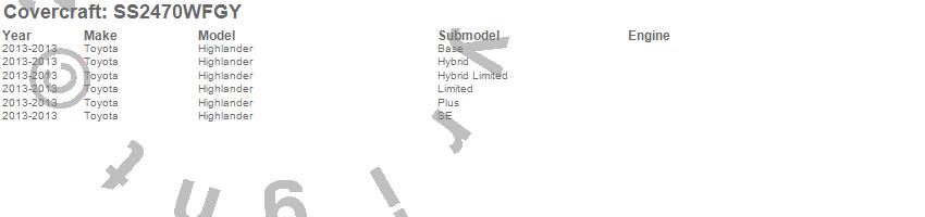 Below is an abbreviated list of applications for the SeatSaver Custom Seat Cover.Highlander, Toyota, 2013