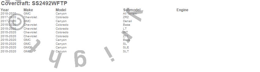 Below is an abbreviated list of applications for the SeatSaver Custom Seat Cover.Canyon, Colorado, Chevrolet, GMC, 2020, 2019, 2018, 2017, 2016, 2015