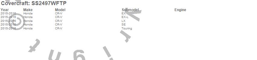 Below is an abbreviated list of applications for the SeatSaver Custom Seat Cover.CR-V, Honda, 2016, 2015