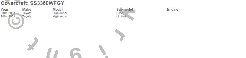 Below is an abbreviated list of applications for the SeatSaver Custom Seat Cover.Highlander, Toyota, 2004