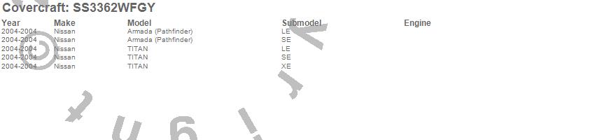 Below is an abbreviated list of applications for the SeatSaver Custom Seat Cover.Armada (Pathfinder), TITAN, Nissan, 2004