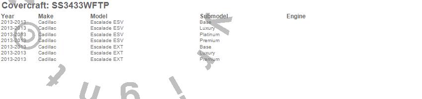 Below is an abbreviated list of applications for the SeatSaver Custom Seat Cover.Escalade ESV, Escalade EXT, Cadillac, 2013
