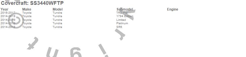 Below is an abbreviated list of applications for the SeatSaver Custom Seat Cover.Tundra, Toyota, 2019, 2018, 2017, 2016, 2015, 2014