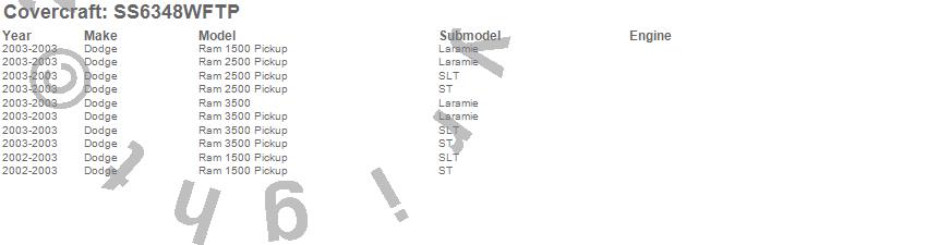 Below is an abbreviated list of applications for the SeatSaver Custom Seat Cover.Ram 1500, Ram 2500, Ram 3500, Dodge, 2003, 2002