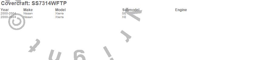 Below is an abbreviated list of applications for the SeatSaver Custom Seat Cover.Xterra, Nissan, 2004, 2003, 2002, 2001, 2000