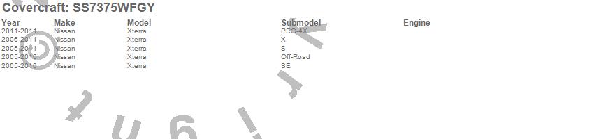 Below is an abbreviated list of applications for the SeatSaver Custom Seat Cover.Xterra, Nissan, 2011, 2010, 2009, 2008, 2007, 2006, 2005