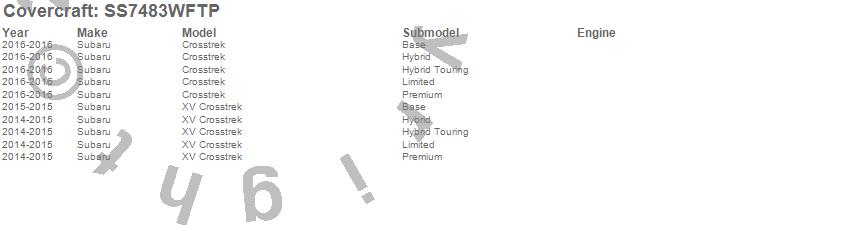 Below is an abbreviated list of applications for the SeatSaver Custom Seat Cover.Crosstrek, XV Crosstrek, Subaru, 2016, 2015, 2014