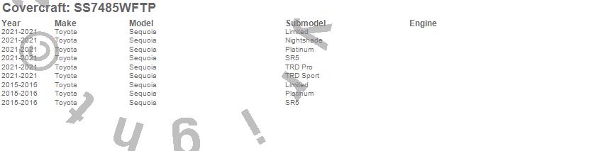 Below is an abbreviated list of applications for the SeatSaver Custom Seat Cover.Sequoia, Toyota, 2021, 2016, 2015