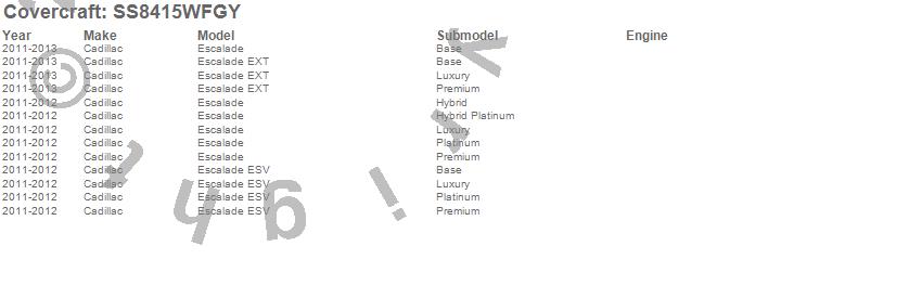 Below is an abbreviated list of applications for the SeatSaver Custom Seat Cover.Escalade, Escalade ESV, Escalade EXT, Cadillac, 2013, 2012, 2011