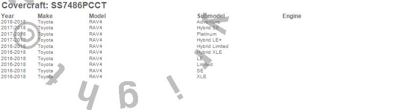 Below is an abbreviated list of applications for the SeatSaver Custom Seat Cover.RAV4, Toyota, 2018, 2017, 2016