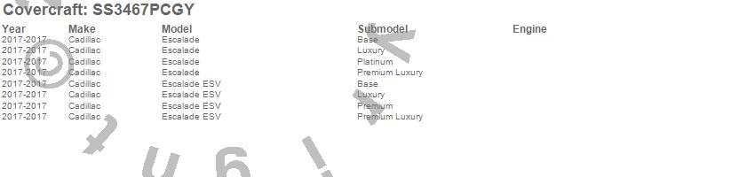 Below is an abbreviated list of applications for the SeatSaver Custom Seat Cover.Escalade, Escalade ESV, Cadillac, 2017
