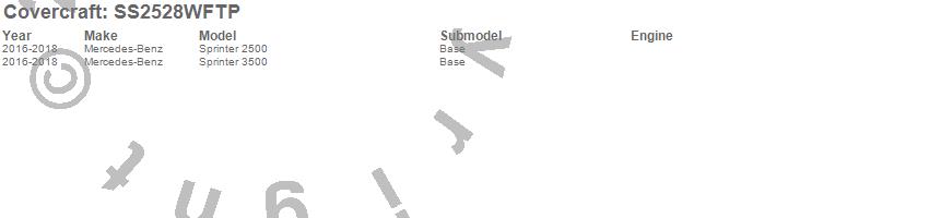 Below is an abbreviated list of applications for the SeatSaver Custom Seat Cover.Sprinter 2500, Sprinter 3500, Mercedes-Benz, 2018, 2017, 2016