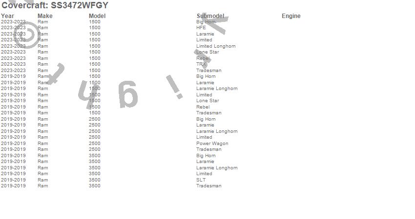 Below is an abbreviated list of applications for the SeatSaver Custom Seat Cover.1500, 2500, 3500, Ram, 2026, 2025, 2024, 2023, 2019
