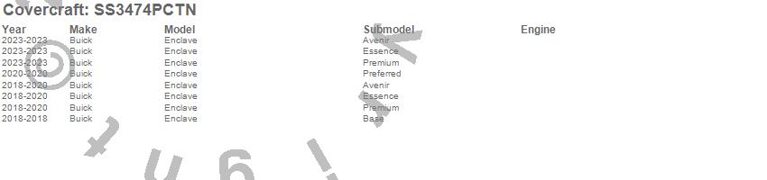Below is an abbreviated list of applications for the SeatSaver Custom Seat Cover.Enclave, Buick, 2023, 2020, 2019, 2018