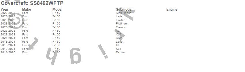 Below is an abbreviated list of applications for the SeatSaver Custom Seat Cover.F-150, Ford, 2025, 2024, 2023, 2021, 2020, 2019