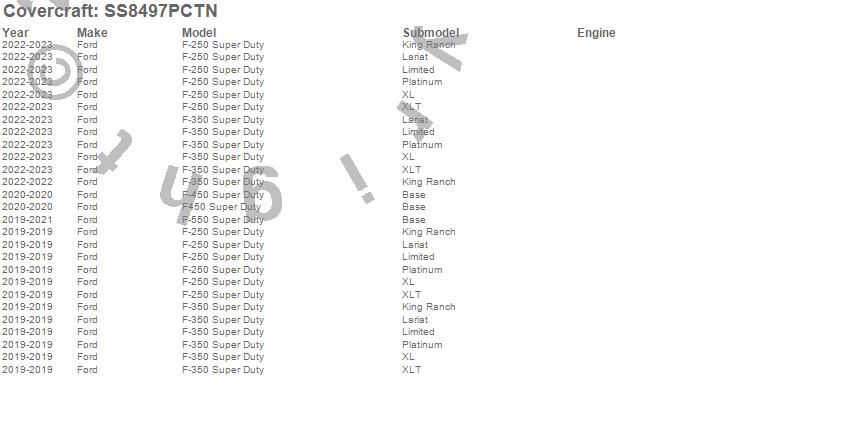 Below is an abbreviated list of applications for the SeatSaver Custom Seat Cover.F-150, F-150 Lightning, F-250 Super Duty, F-350 Super Duty, F-450 Super Duty, F-550 Super Duty, F450 Super Duty, Ford, 2026, 2025, 2024, 2023, 2022, 2021, 2020, 2019